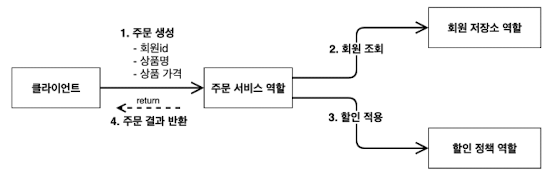 4. 주문 결과 반환: 주문 서비스는 할인 결과를 포함한 주문 결과를 반환한다.