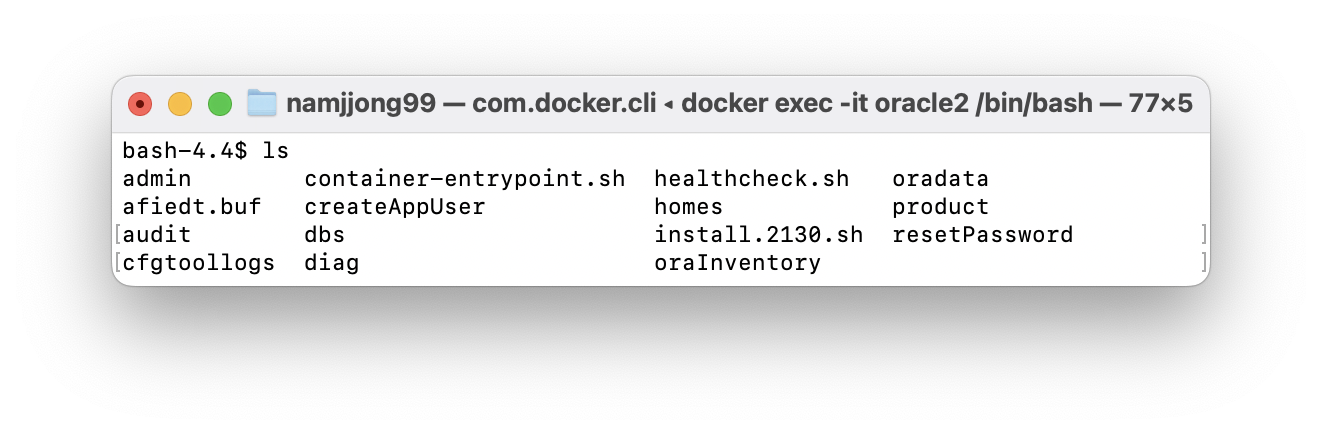 현재 OracleDB가 깔려있는 나의 Docker Container의 경로는 /opt/oracle이다.